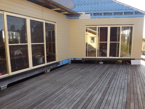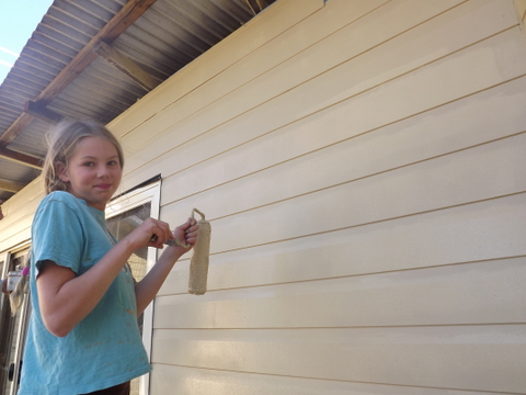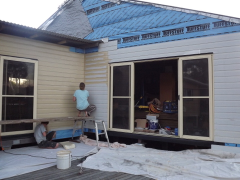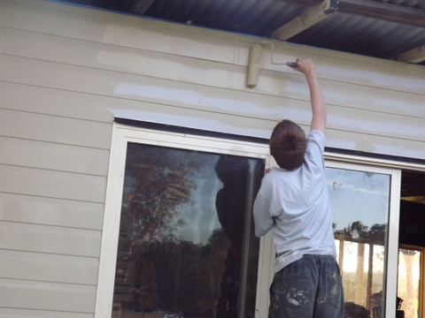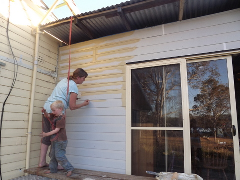 With two exterior walls successfully painted we moved onto painting the walls surrounding the deck.