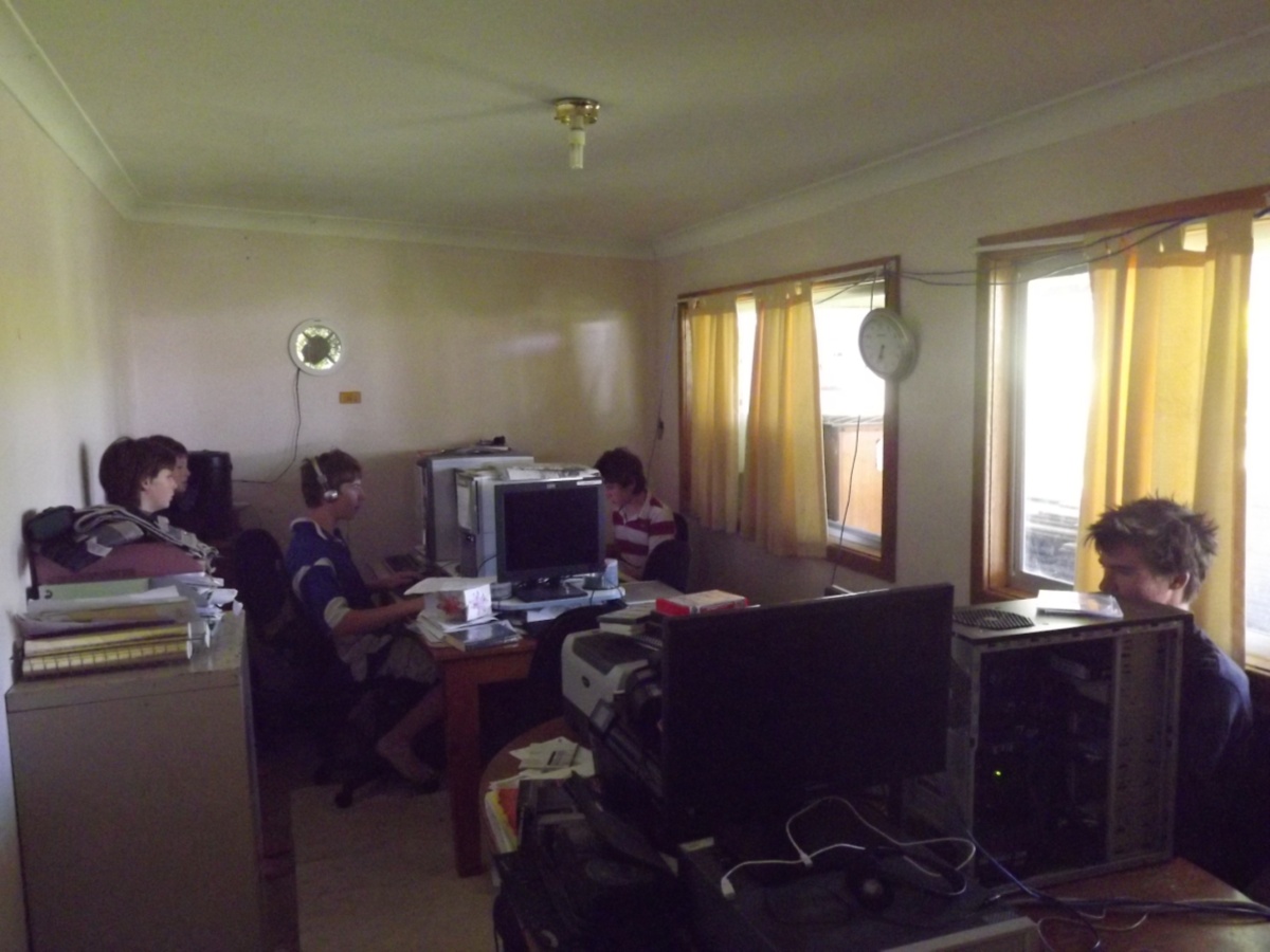 Our main learning area, adjacent to the living room where we congregate for joint lessons and where I work with our younger children. Stationery and daily use books are stored here. Eventually this will be our new kitchen and the learning room will move to the current living room.