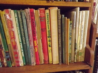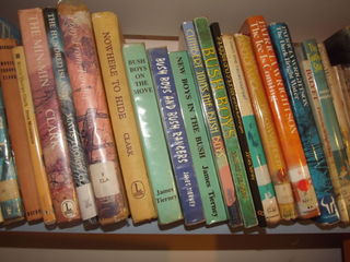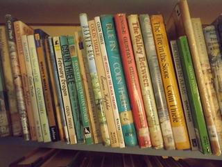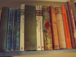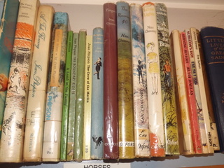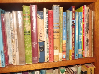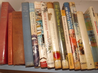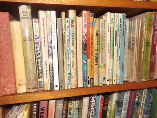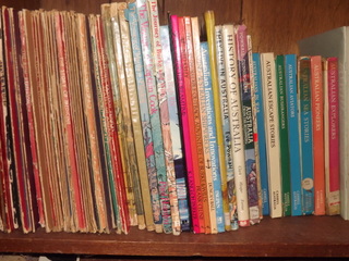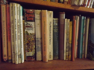 Third shelf up history, nature and literature; Seven Little Australians, Our Sunburnt Country and Australian in History series, Clune and Nuri Mass, Leach and other Australian nature titles,