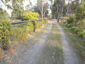 Looking up the driveway. Flowers along the fenceline Arrangement at the top of the drive. Looking down towards the front