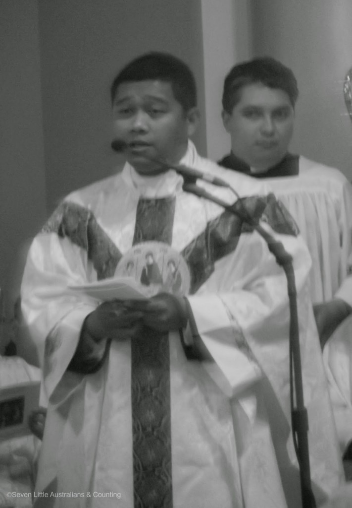 Our new priest Father B, sharing words of thanksgiving to many who supported him on his journey.  The children were so excited when he was clothed in his stole and chasuble by our parish priest, they whispered to me, “Now he is Father B, not Deacon B”.