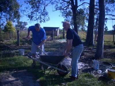 In order to build the piers Michelangelo and Uncle Paul moved my clothesline. It is now a good 50metre walk from the laundry. I push the washing over in the wheelbarrow.