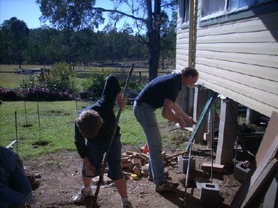 PC was ‘inspired’ by his brother to begin work on the house again. They worked on finishing the piers between the two houses.