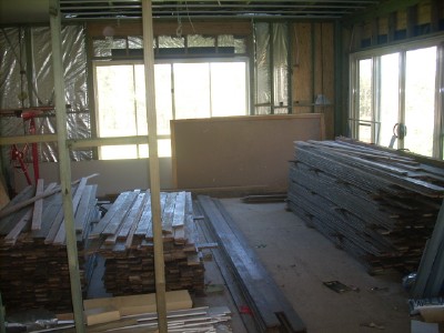 Timber had to be carried into the end room and sorted into size piles before exiting the window.