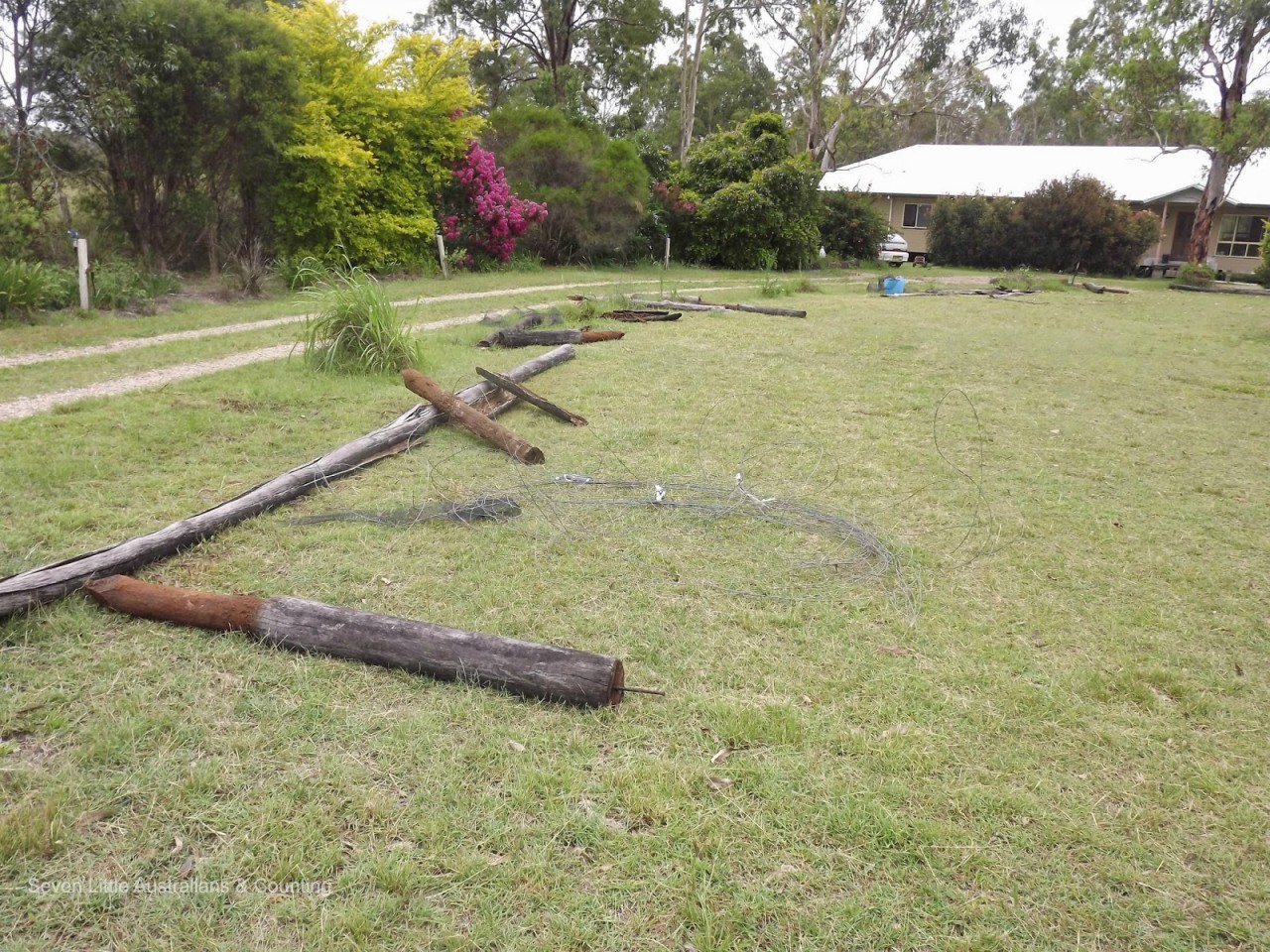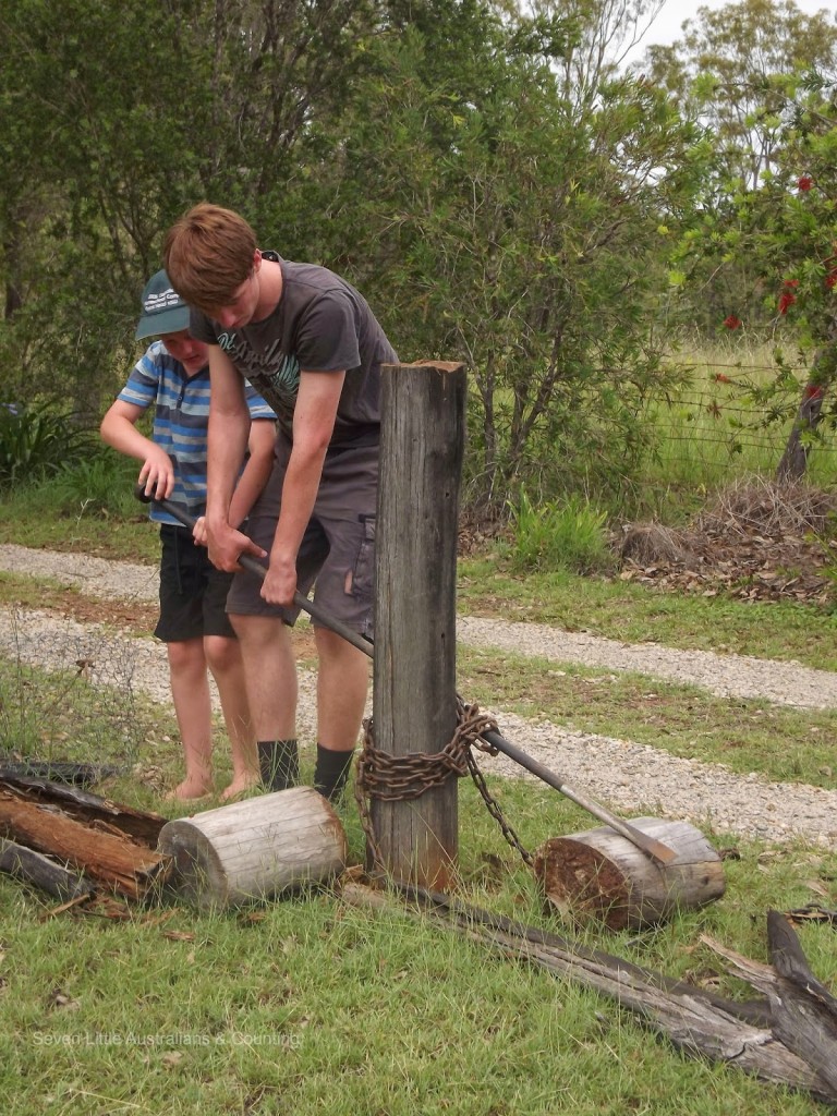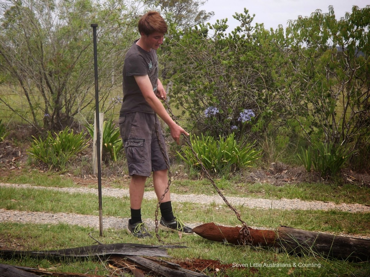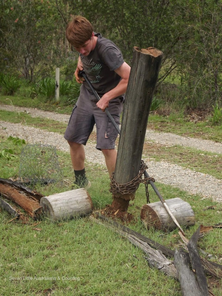 The fence along our driveway and around our orchard has been rotted for sometime, Spotted Gum is not a good choice when white ants are present. Michelangelo(15) decided the time had come for the fence to go, and forthwith he ‘marshaled the troops’ and organised his labour force