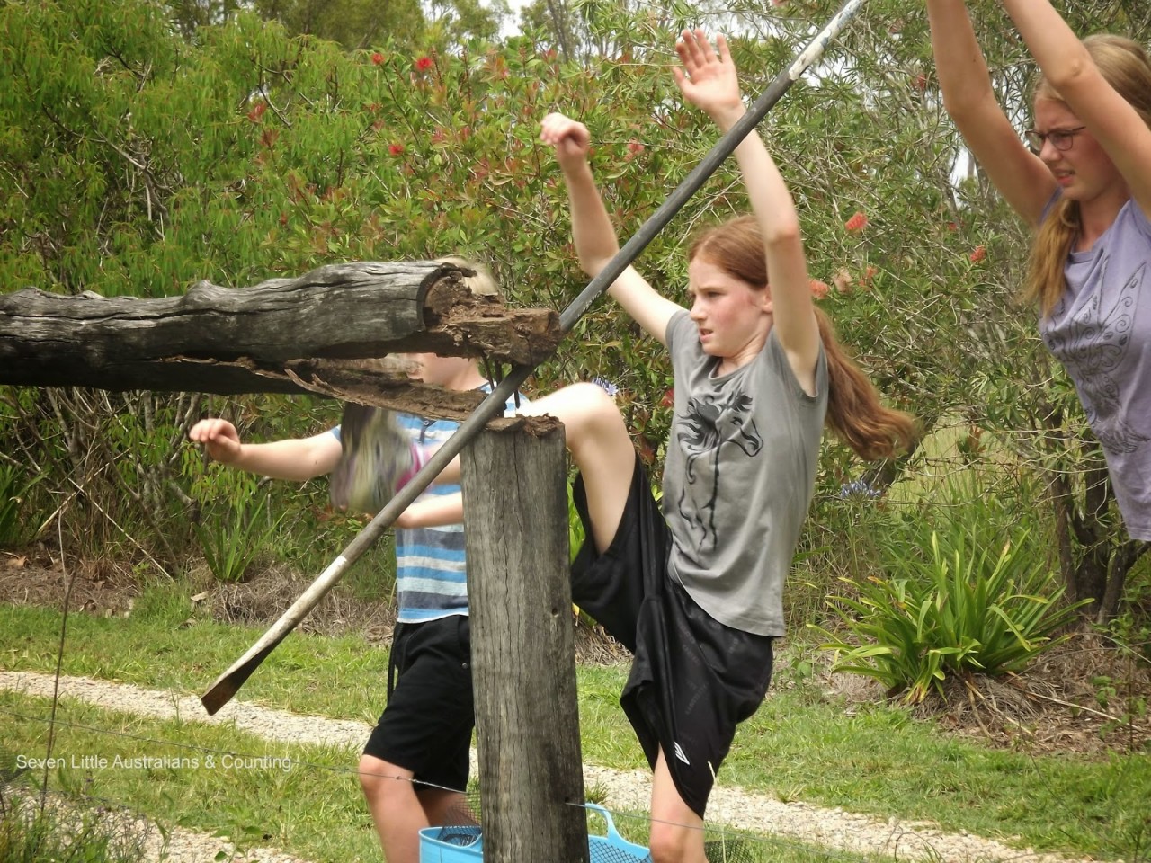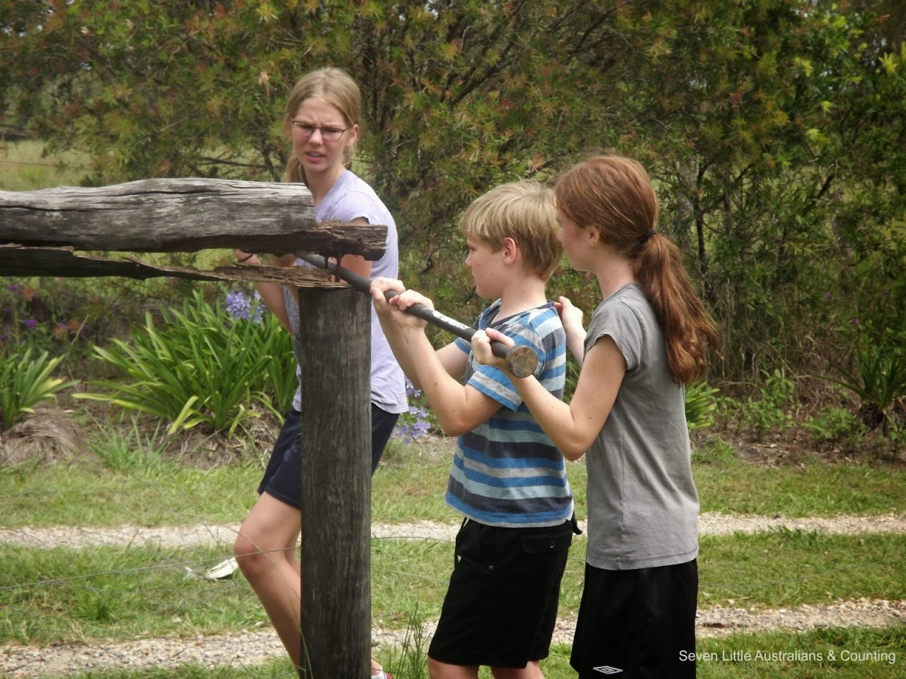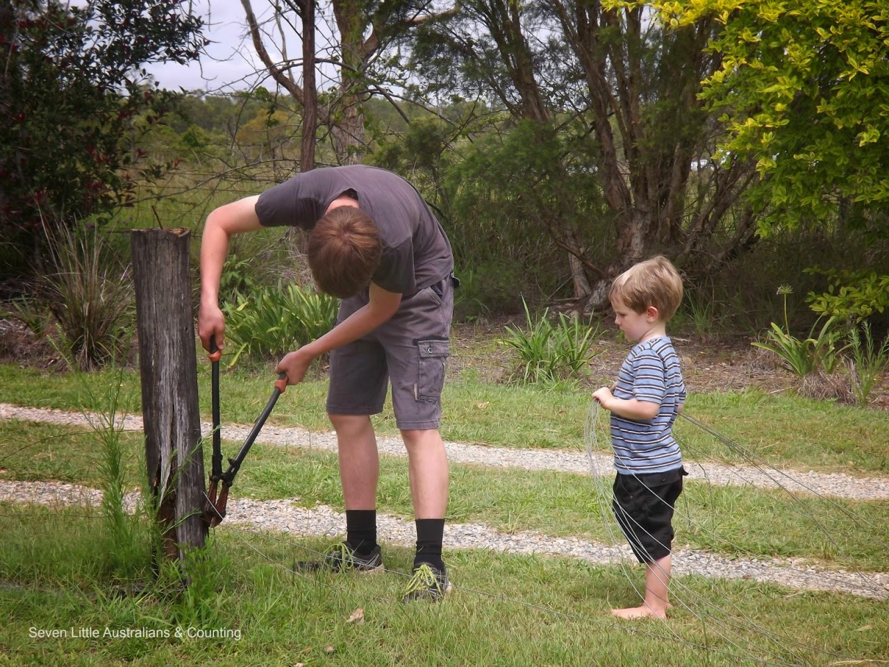 The fence along our driveway and around our orchard has been rotted for sometime, Spotted Gum is not a good choice when white ants are present. Michelangelo(15) decided the time had come for the fence to go, and forthwith he ‘marshaled the troops’ and organised his labour force