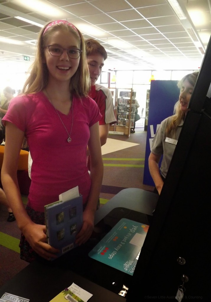 See this, a self scanner for borrowing books! The children think this just the greatest, lots of fun:)