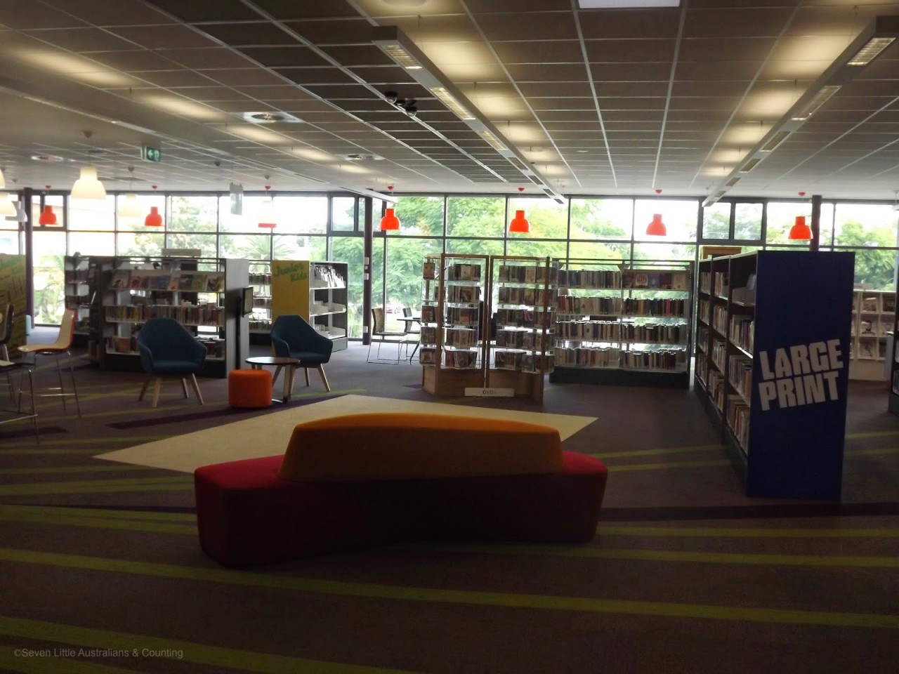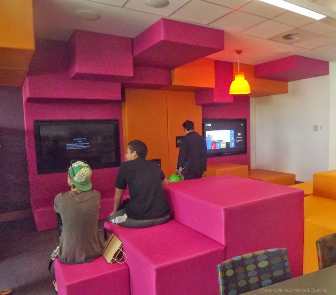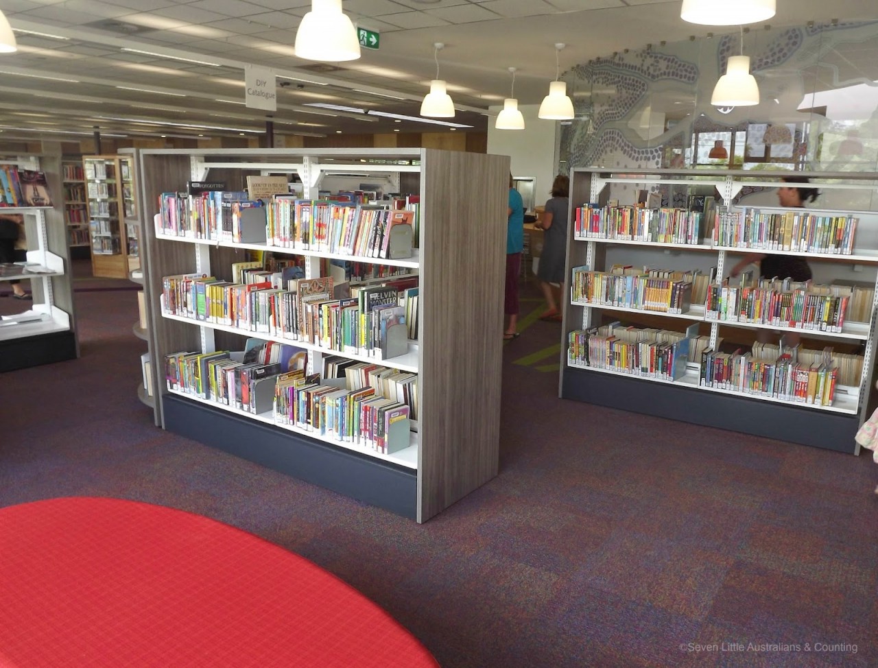 So many things still to see;there are sound proof rooms I haven’t even seen yet, catalogue touch screens for each section, an interactive mat with projected images.  Most exciting though is as the library is on one level, there is accessibility to all, including wheelchair access and prams.  Even better though is we now have a toilet!!  Yeah I image you could be snorting with laughter over that, but just think for 18 years my nightmare has always been taking children to the library and then having to do a toilet run for half a block with a baby tucked under one arm, dragging a desperate toddler with a pre-schooler or two running behind most reluctantly. Current toddler has already availed himself of the new feature;)