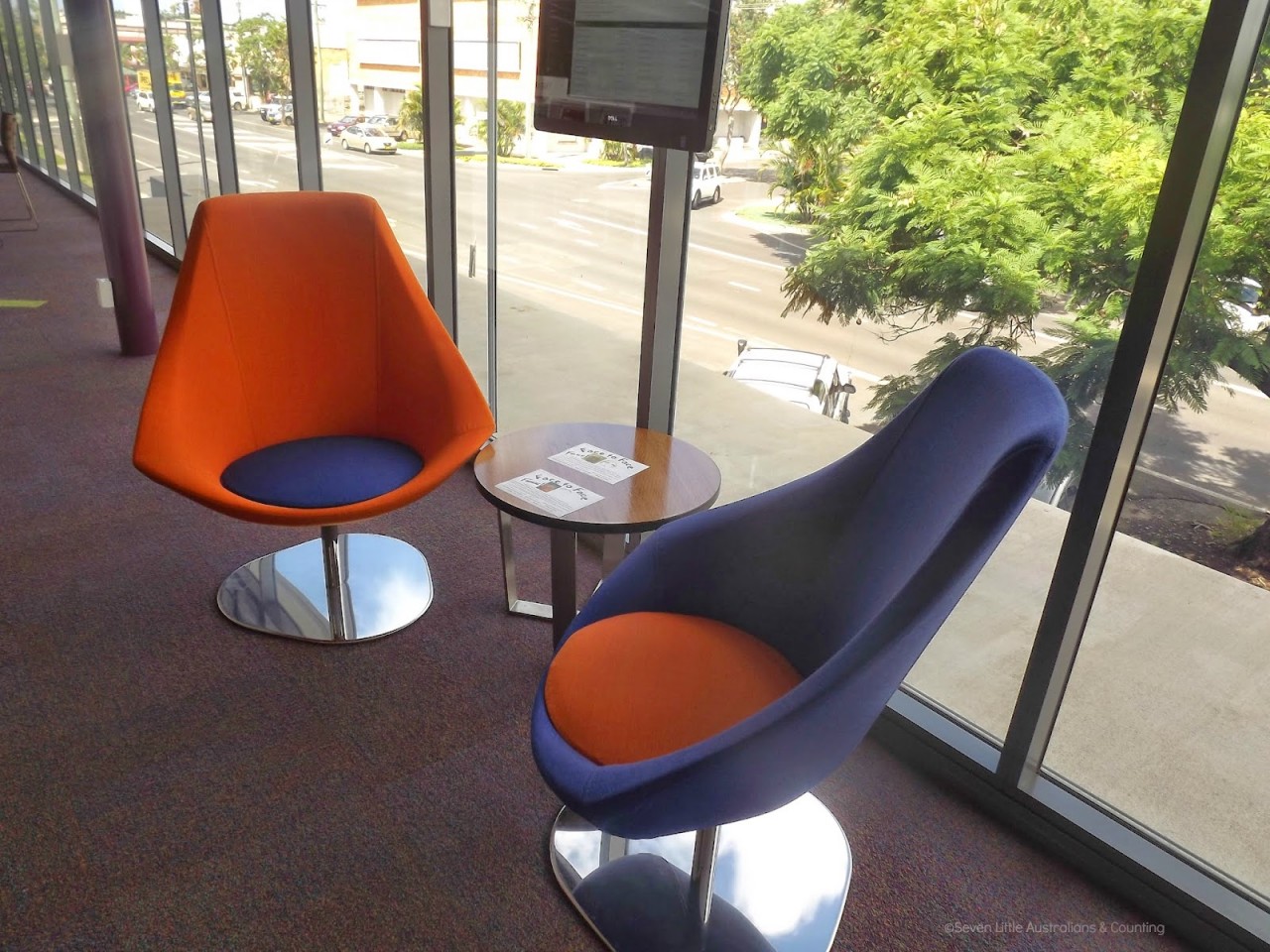 These incredible windows run for the entire side of the library, letting in plenty of light, and adding to the sense of spaciousness.  Sprinkled throughout the library are inviting chairs, which I can guarantee are comfortable indeed.