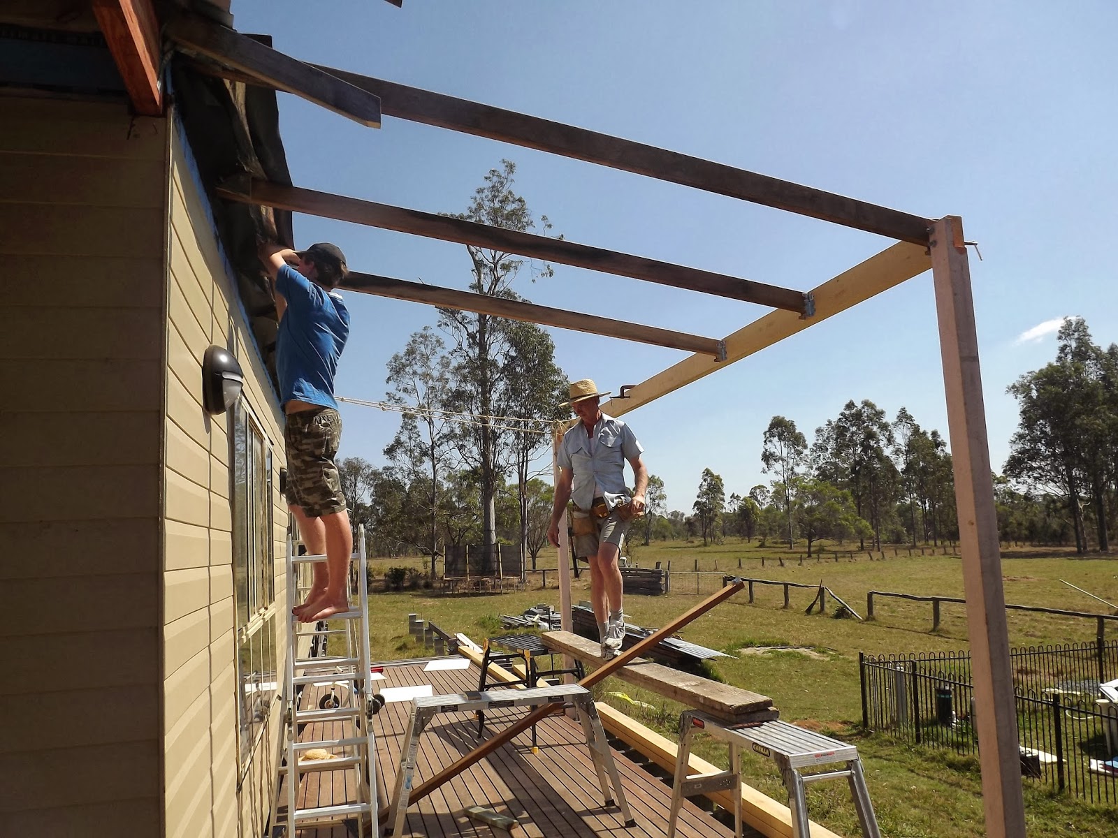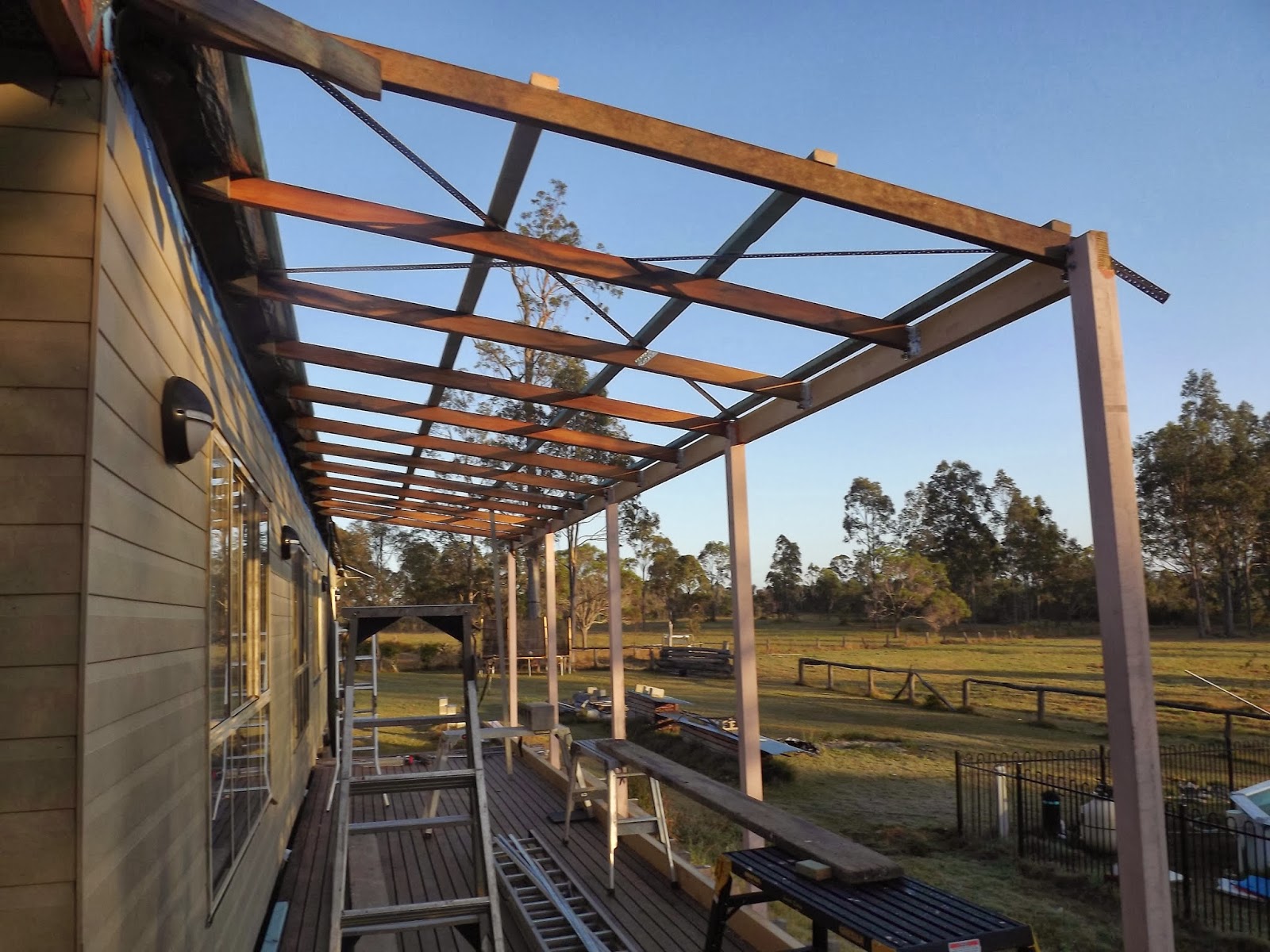 The posts and rafters were next up, PC took a few days off work so we could complete the verandah.